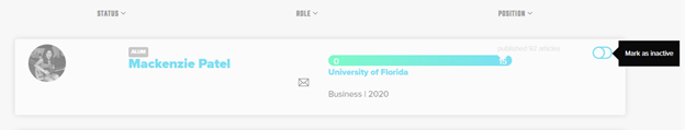 If someone on your team wants to leave your chapter, you can mark them as "inactive" in Secret Sauce by clicking the toggle by their name in your user list.